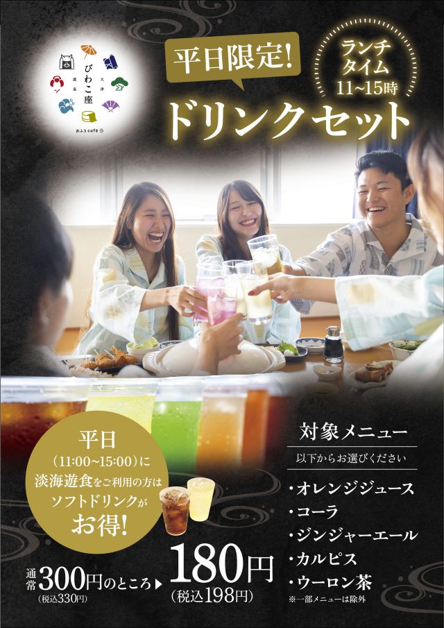 10月1日(水)より2階レストラン淡海遊食にてドリンクセットをはじめます!